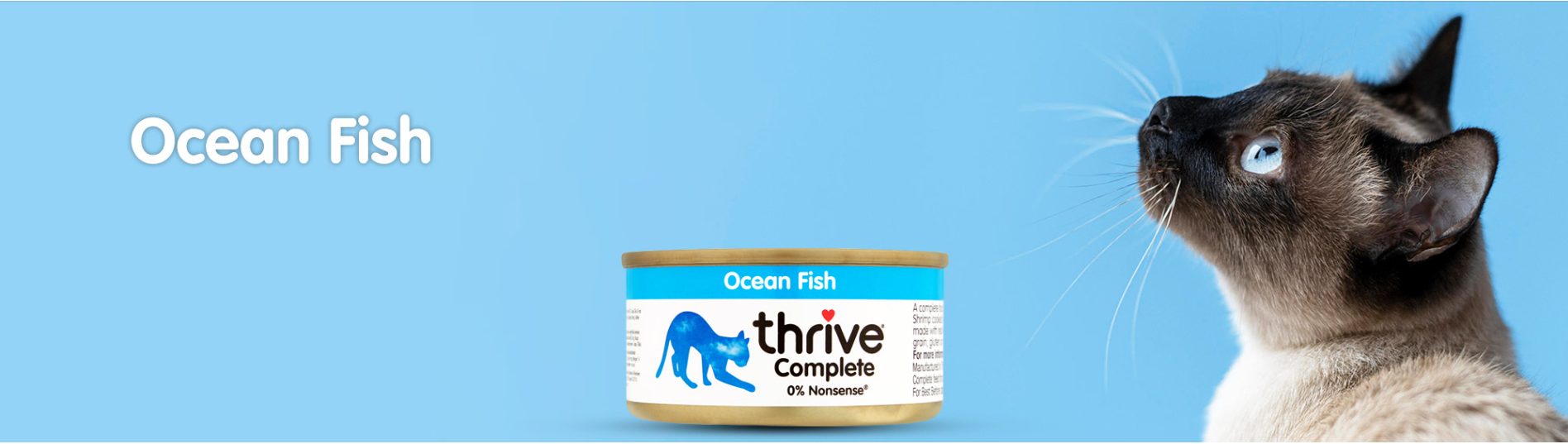 Thrive Ocean Fish is cooked in a fish broth with added vitamins and minerals to give your cat a complete nutritionally balanced meal.